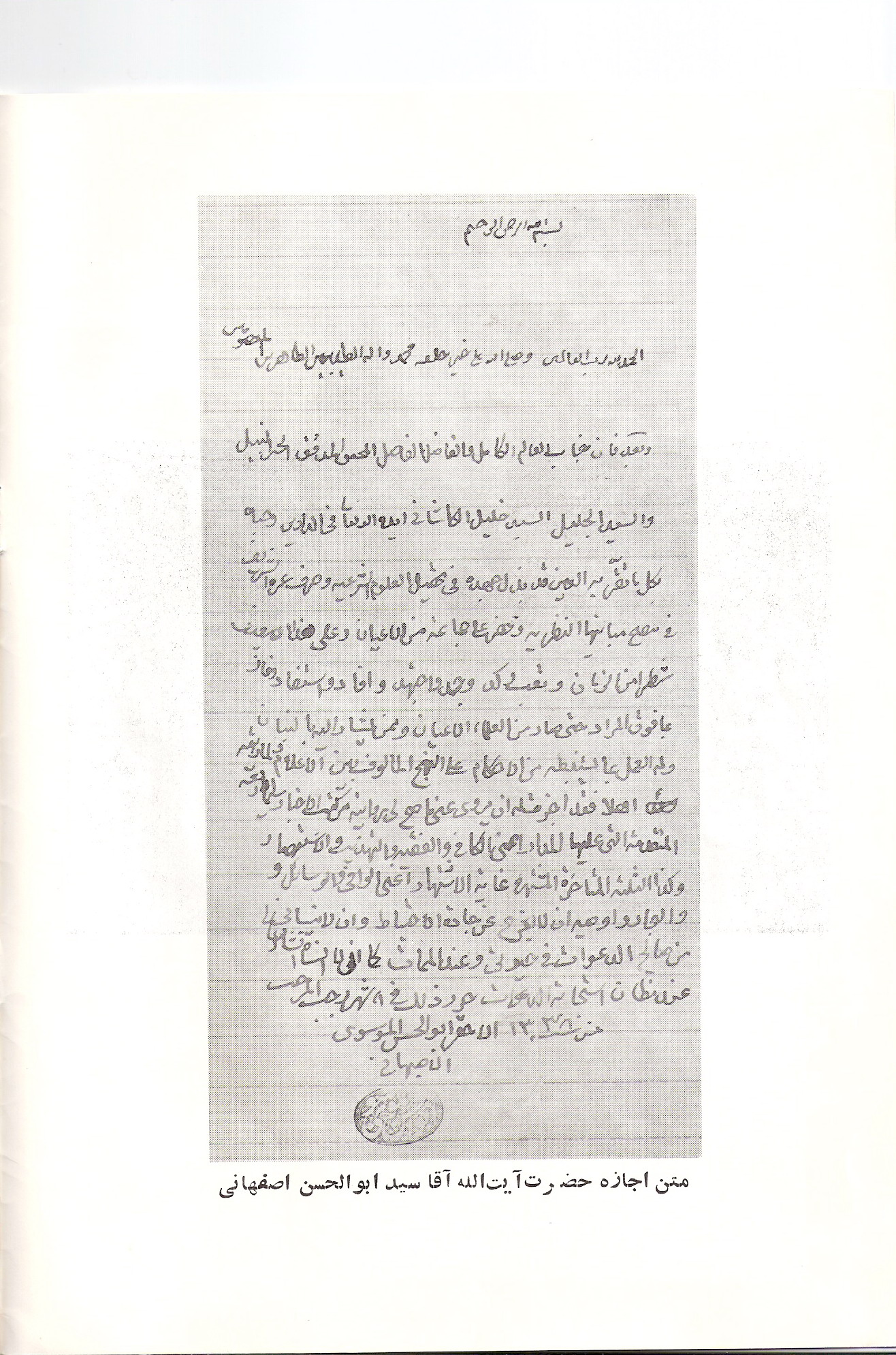 - اجازات حضرت آیت الله سید خلیل الله حسینی فقیه